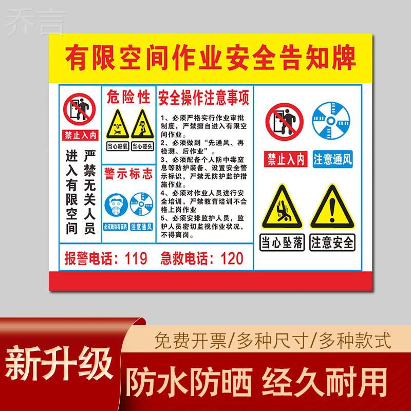 受限空间作业危险告知牌粉尘噪声注意高温安全风险生产周知温馨提示警告警示注意工作场所车间贴纸标志标识