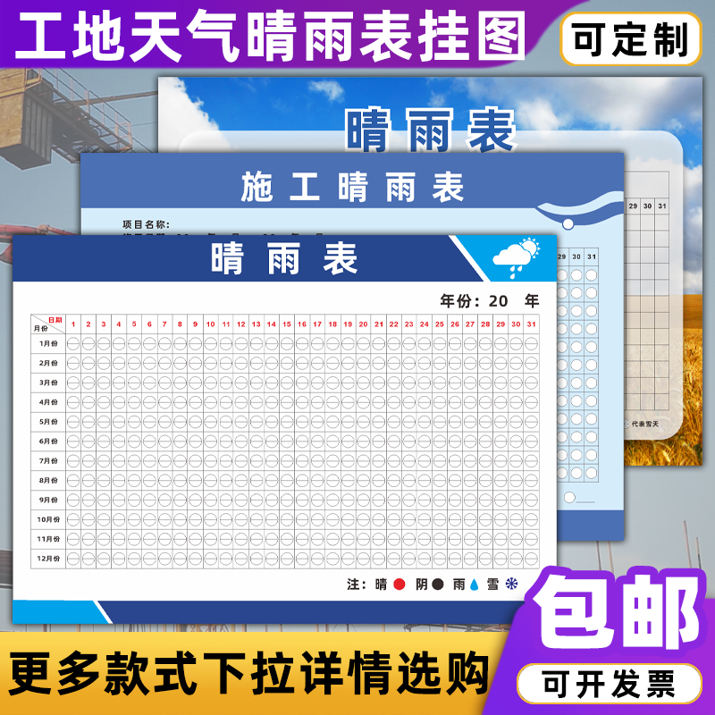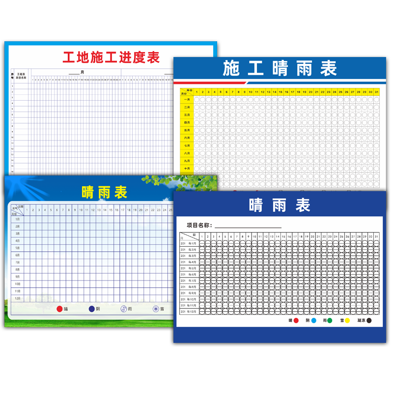 工地施工晴雨表标识牌工程现场进度表天气变化日历海报墙贴纸定制