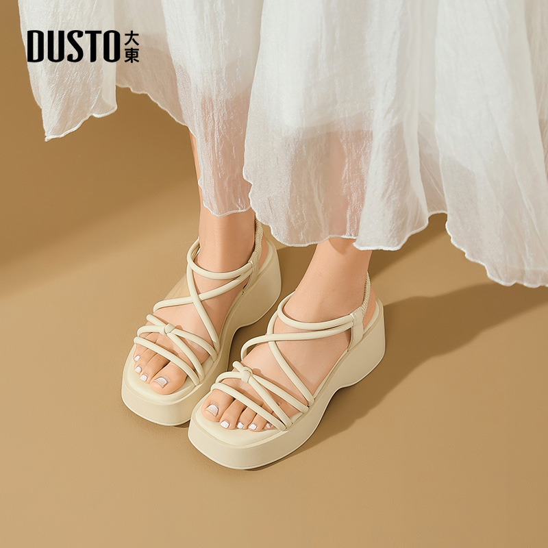 大东沙滩凉鞋女鞋2025夏季新款休闲坡跟高跟松紧带结构变化X0228