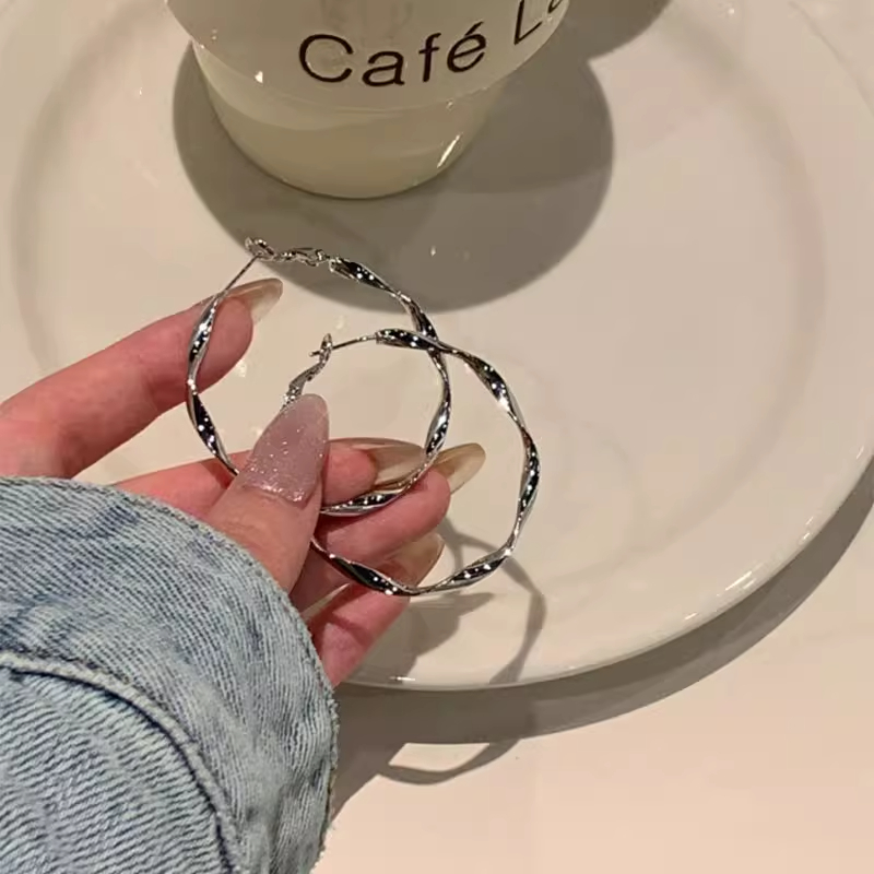 夸张银色旋转耳圈素圈2025爆款独特大耳环小众设计感高级耳饰圆圈