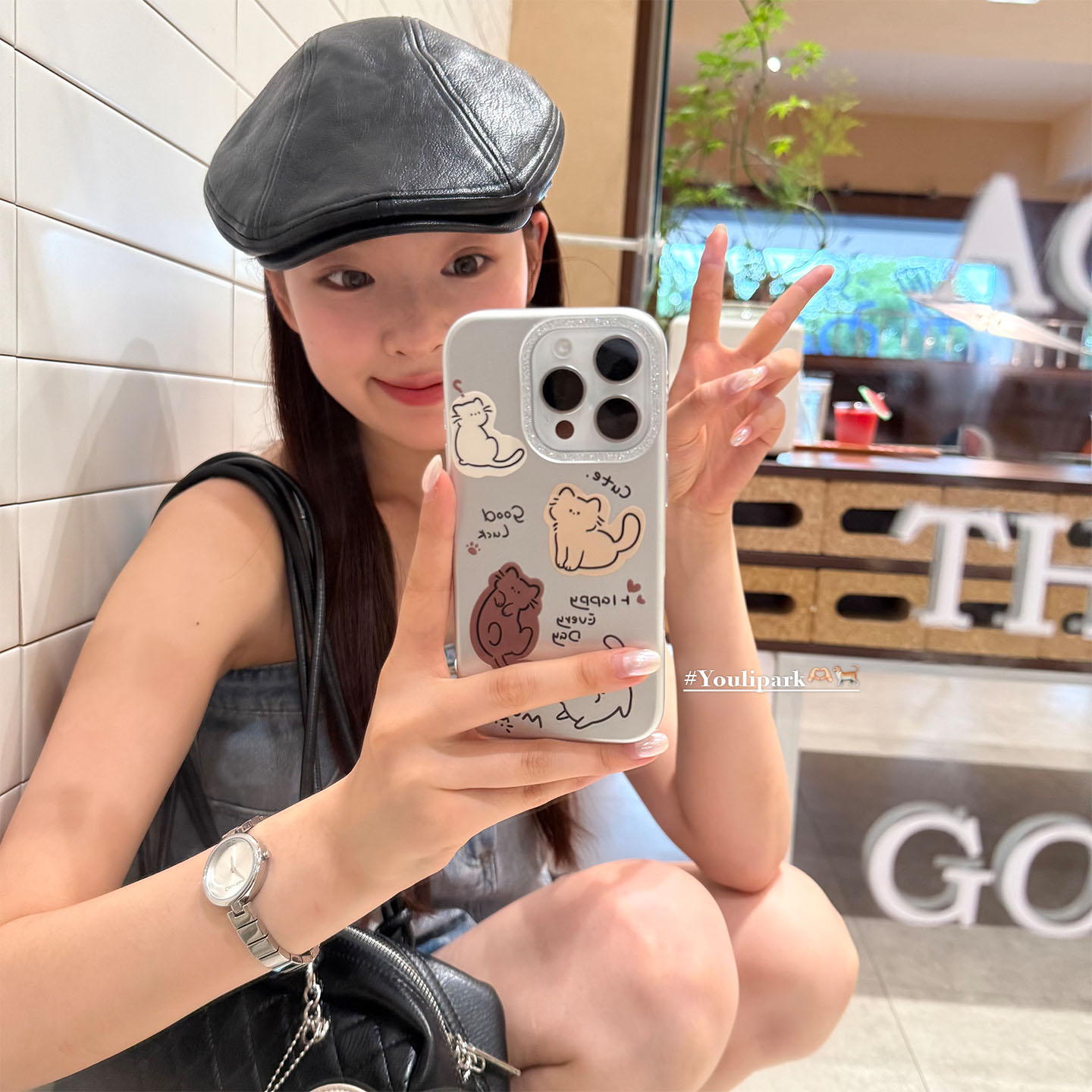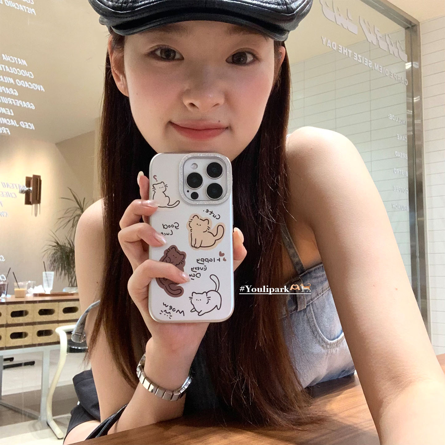 由里公园ins可爱电镀巧克力曲奇饼干小猫15适用16pro苹果16ProMax手机壳iPhone16全包14新款14Promax保护套女