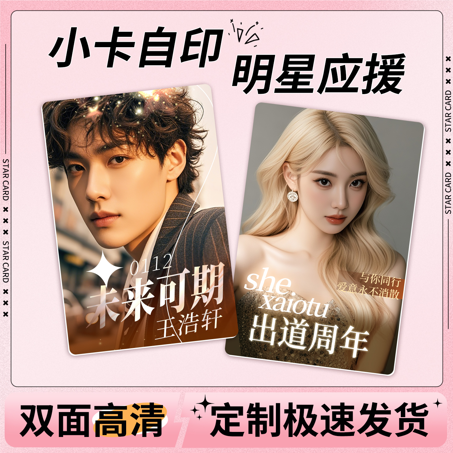自印小卡定制自制打印照片明星应援物料爱豆三寸diy自印高清来图定做单双亮膜哑膜硬卡片nfc音乐镭射卡片打印
