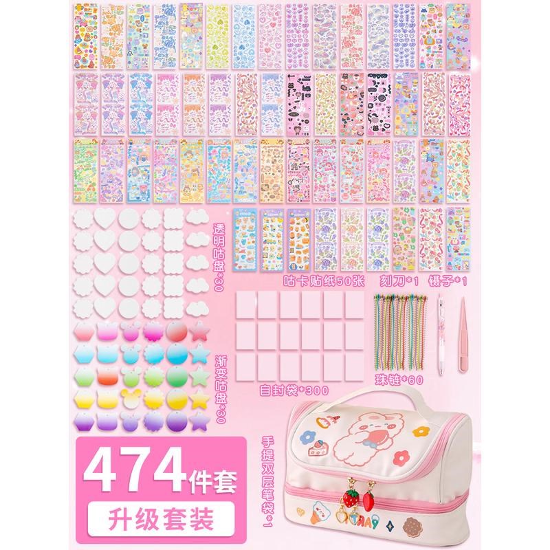 咕卡套装儿童女孩贴纸砖块玩具豪华版流沙笔袋卡套亚克力盘咕新款