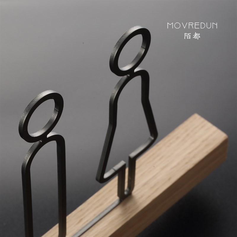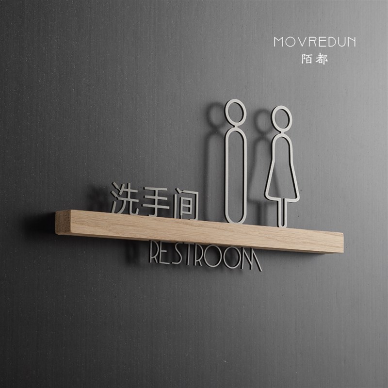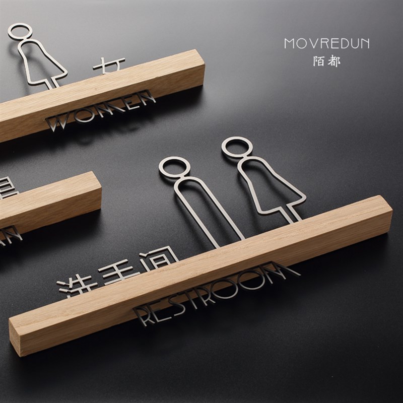 卫生间标识牌高端简约金属木条厕所牌子个性洗手间指示牌男女卫生