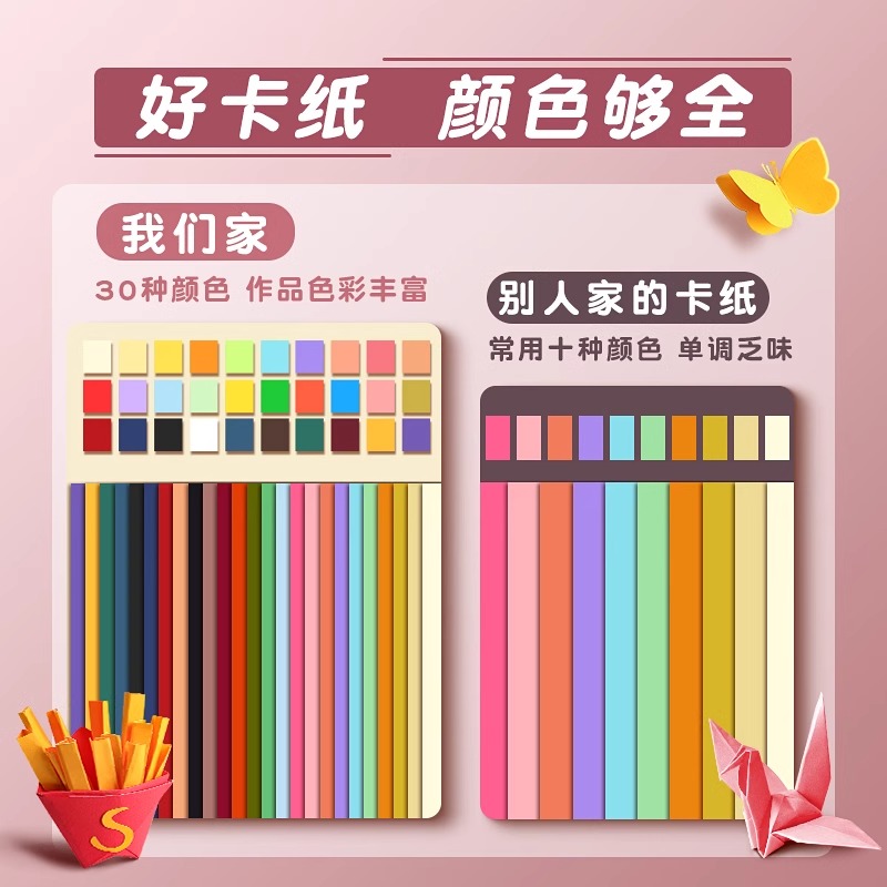 得力卡纸彩色手工硬卡纸A4儿童剪纸彩纸手工纸8k幼儿园制作材料小学生A3折纸黑色白色学生美术绘画4K幼儿卡纸