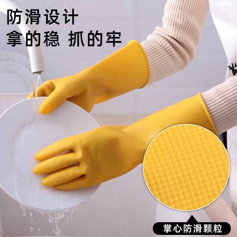 洗碗手套加绒加厚保暖加长男女家务厨房耐用胶皮洗衣清洁橡胶乳胶