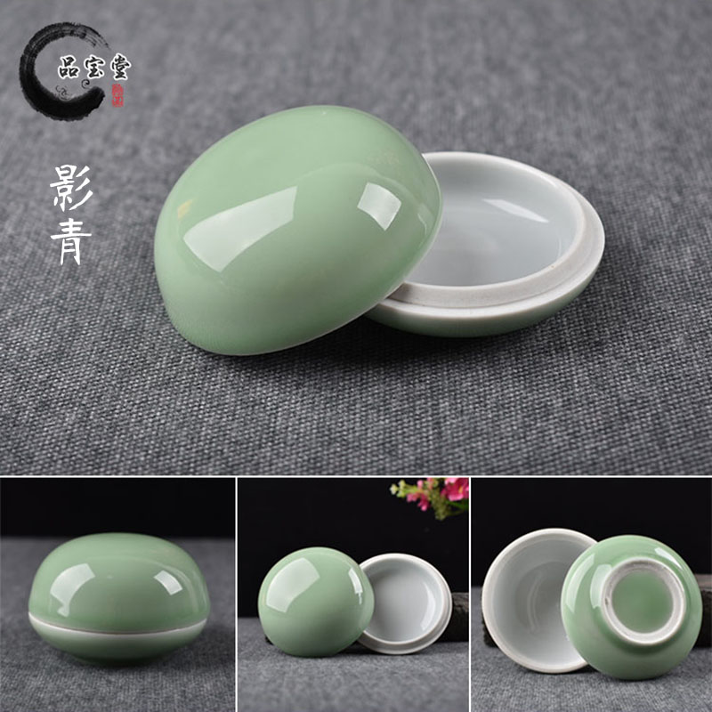 朱砂印泥缸蓝色陶瓷印泥盒朱膘大号篆刻印章国风书法国画专用印尼