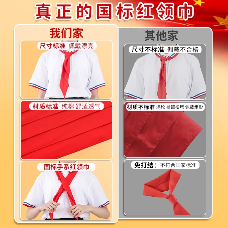 红领巾小学生初中生大号标准不缩水通用专用抗皱加厚不掉色纯棉全棉布手系一年级小号儿童红领巾高档统一批发