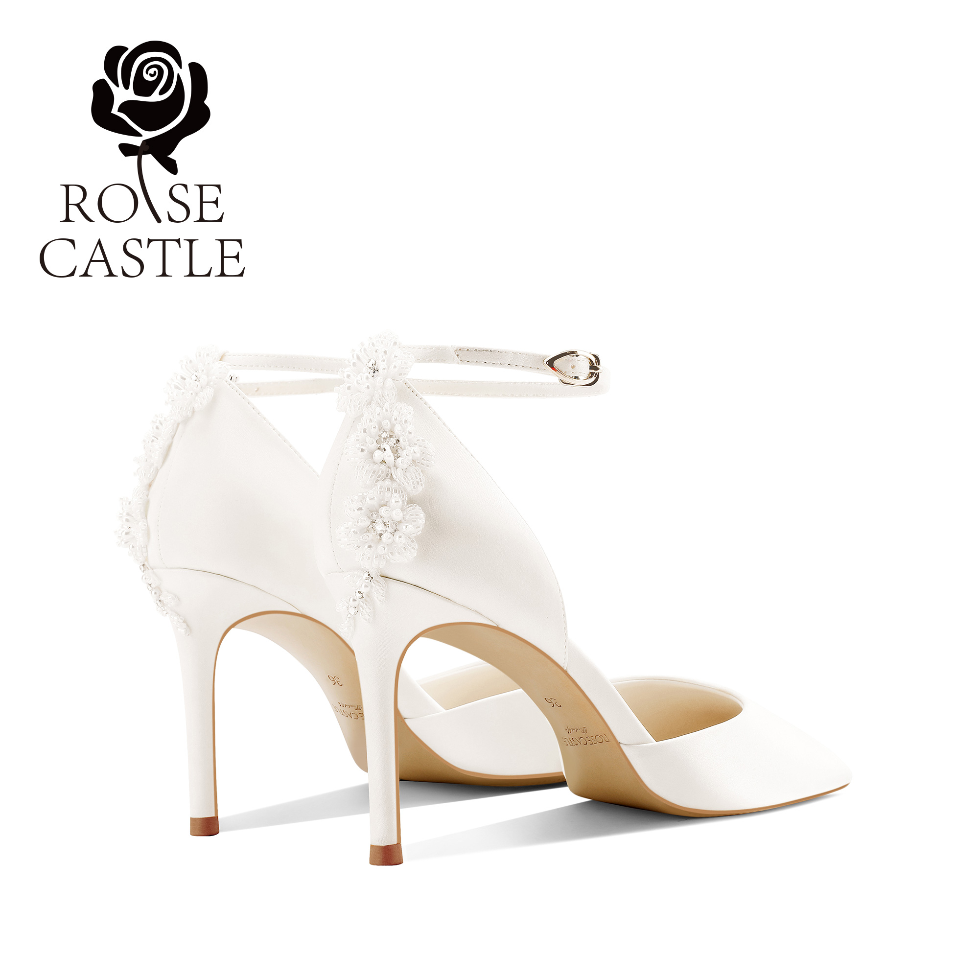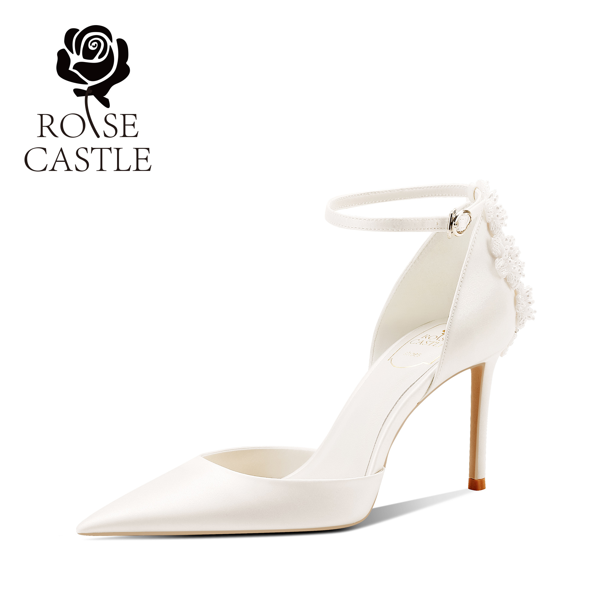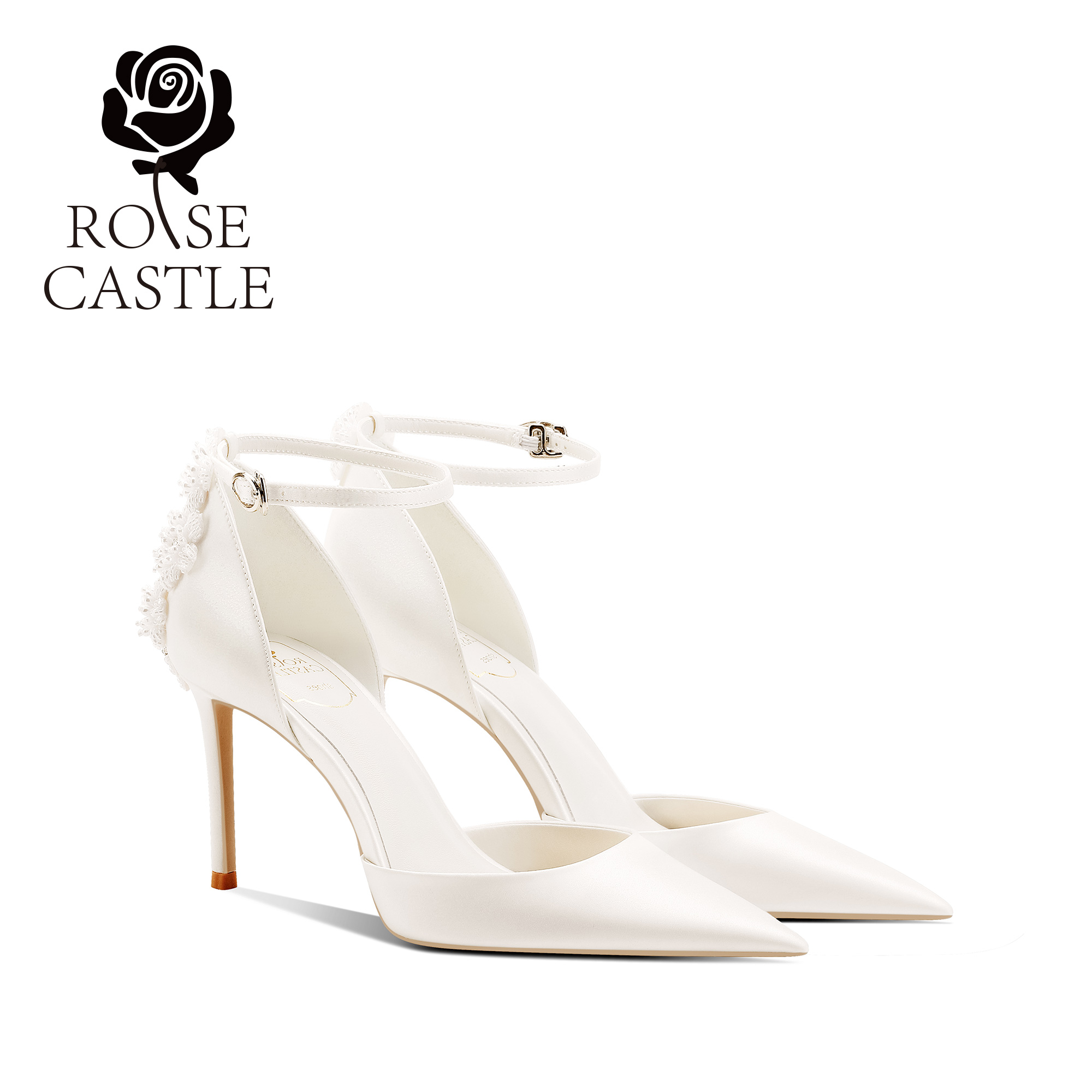 雪绒花rose castle 原创法式订婚鞋女一字带高跟水钻新娘礼服单鞋