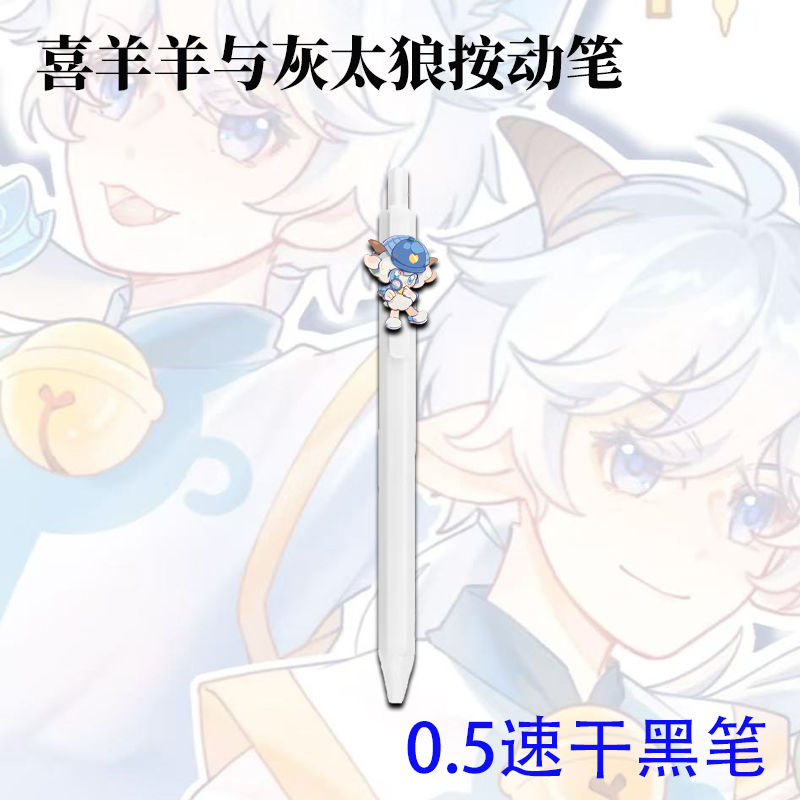 喜羊羊与灰太狼按动笔可爱卡通学生刷题笔0.5mm速干顺滑考试黑笔