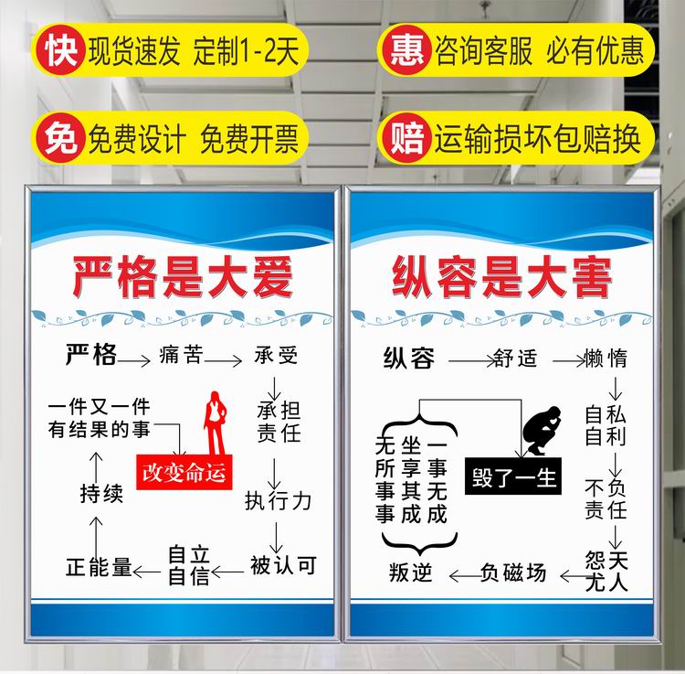 管理严格是大爱纵容是大害企业文化车间教育警示挂图成功激励标牌