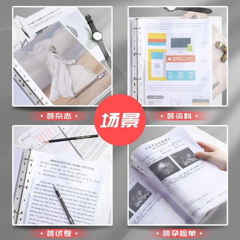 a4活页文件夹透明插页式资料册袋四孔打孔活页夹套a4纸夹子收纳册