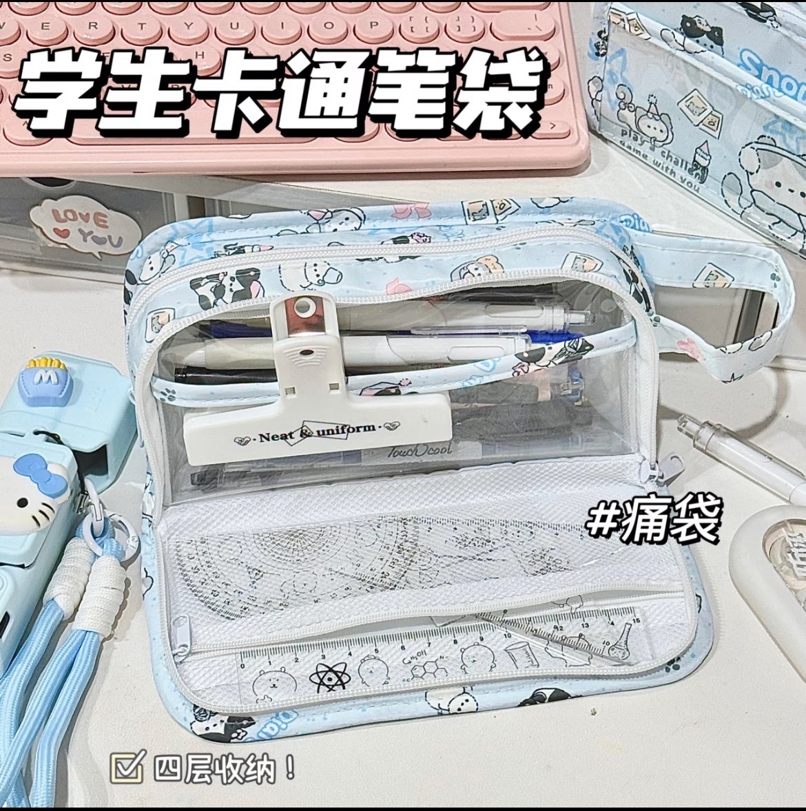 ins新款围巾小猫痛包笔袋卡通印花多层便携文具袋可爱大容量笔盒