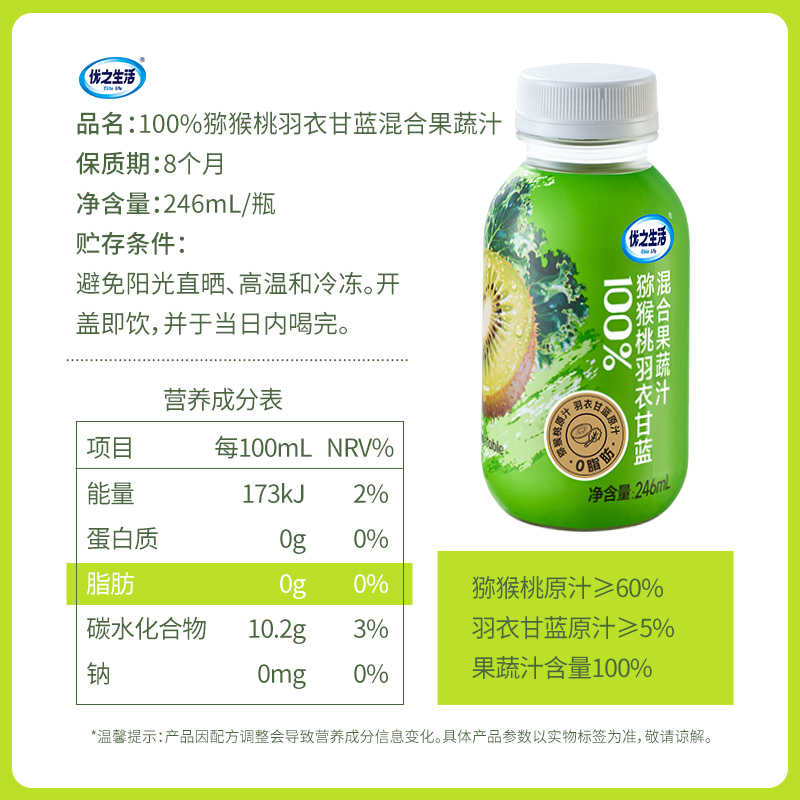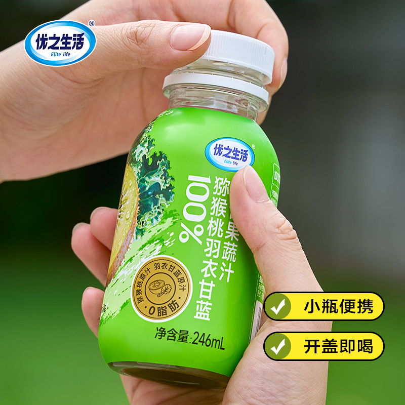 优之生活猕猴桃羽衣甘蓝混合果蔬汁饮品246ml*8瓶丨100%果汁饮料
