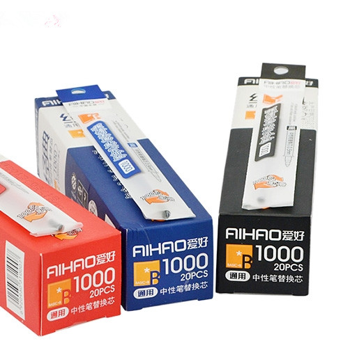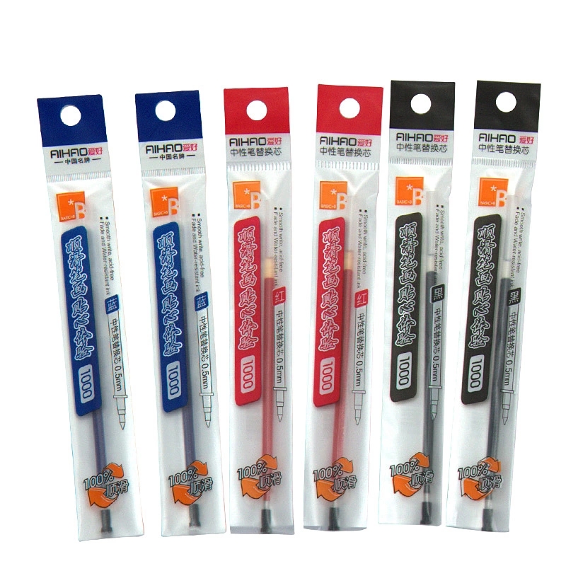 爱好文具经典通用0.5mm黑红色子弹头中性笔替芯 办公款1000水笔芯
