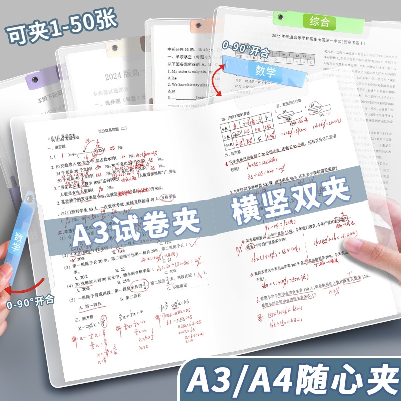 a3试卷夹大容量资料文件夹小学生专用卷子试卷整理神器收纳袋a4可旋转抽杆初高中生透明插页活页收纳册