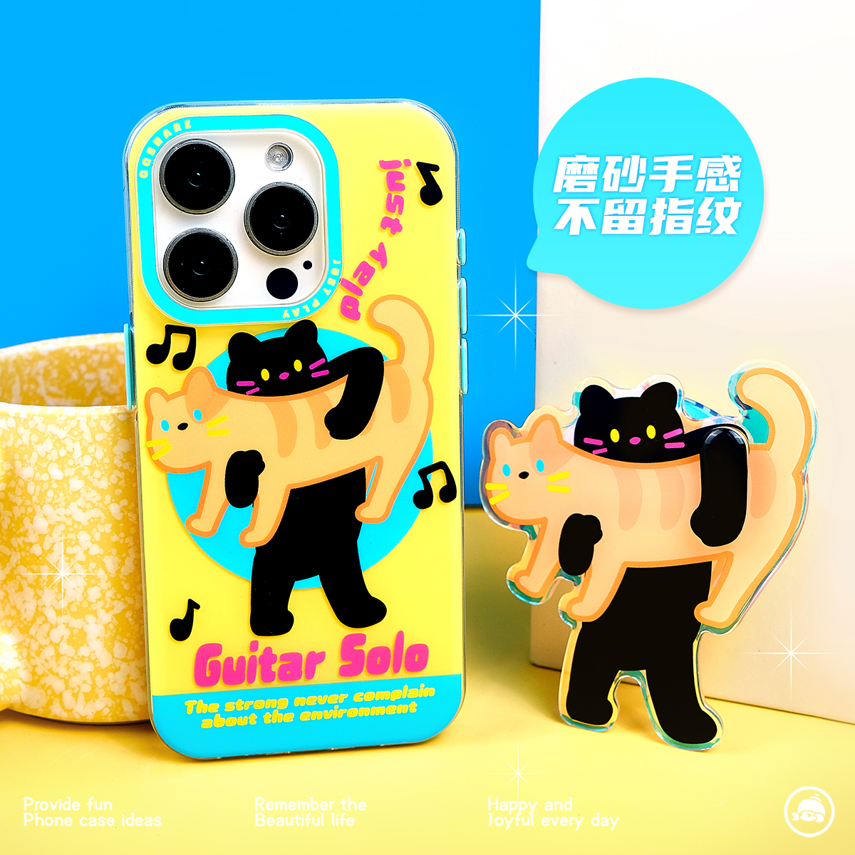 寄居蟹吉他猫原创iphone17手机壳带磁吸支架16适用苹果15promax手机套13新款14小众高级感可爱搞怪防丢手腕绳