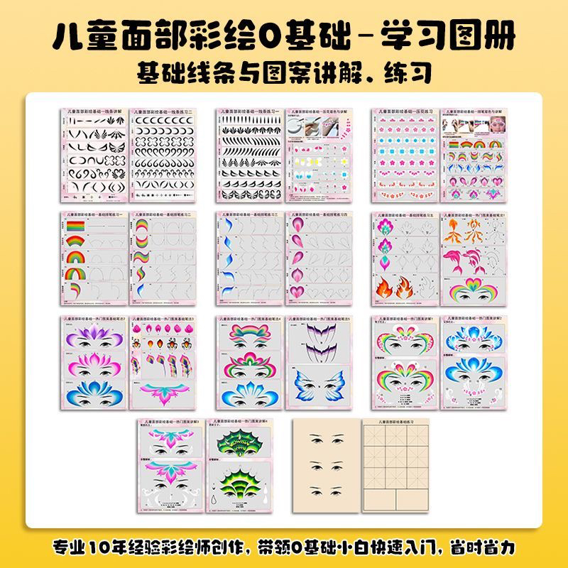 儿童面部彩绘新手线描临摹卡初学者基本功画板水滴线条笔画练习板