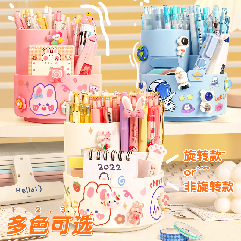 360度旋转笔筒可爱儿童男女孩子小学生桌面文具收纳盒多功能大容量笔盒办公室书桌笔架放装笔的笔桶创意摆件