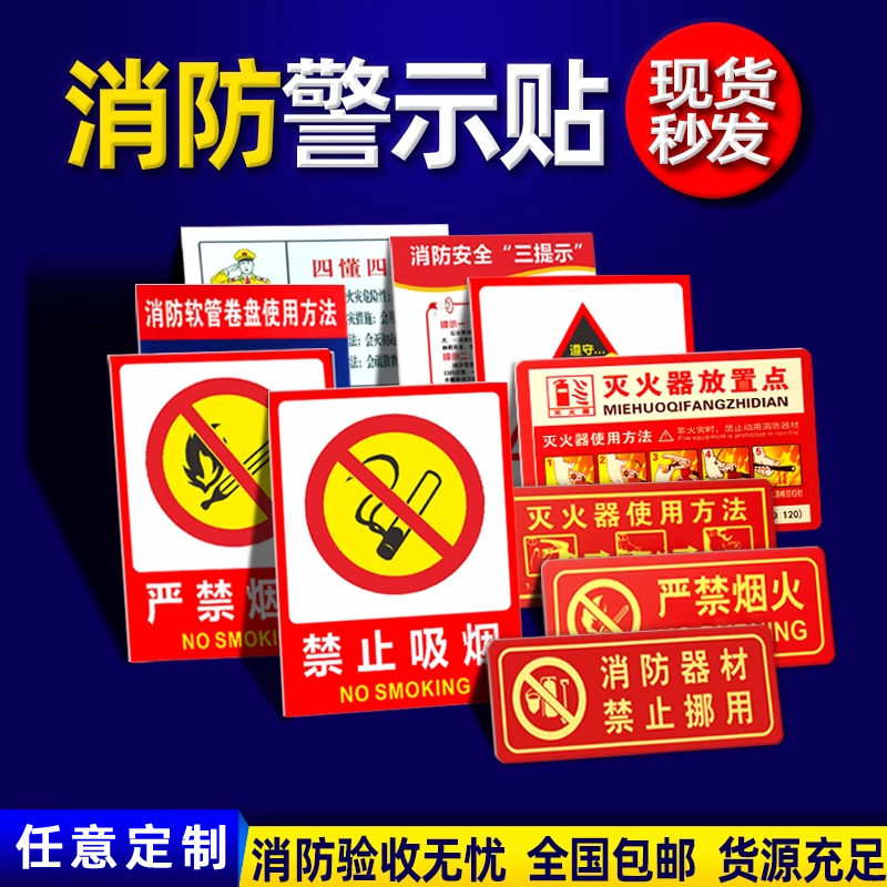 灭火器放置点贴纸消防栓消火栓使用方法说明消防标识标牌禁止吸烟严禁烟火仓库重地闲人免进警示安全标识牌