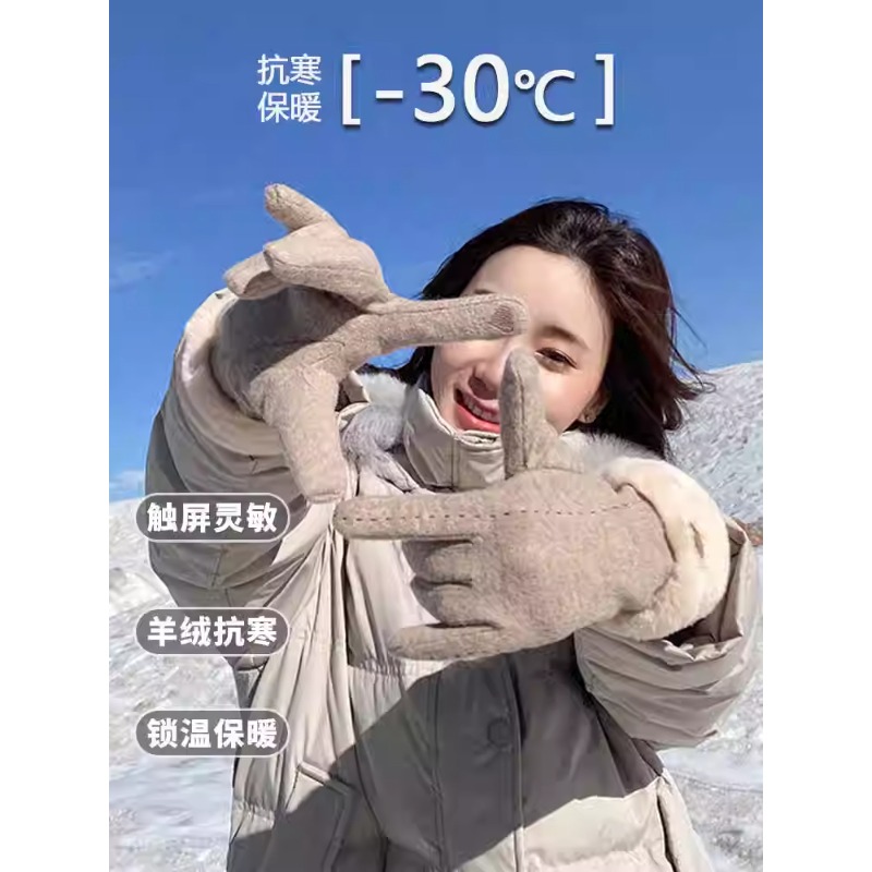新款冬季保暖手套加绒加厚防寒触屏骑行开车户外运动德绒棉手套