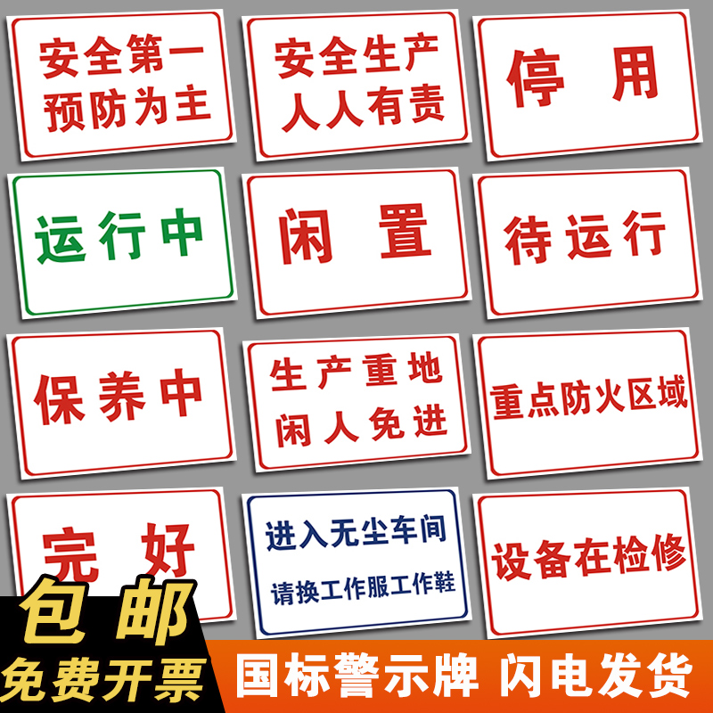 安全生产人人有责标识标牌注意待修设备修理时禁止转动仓库重地闲人免进安全第一预防为主设备停用警示牌定制