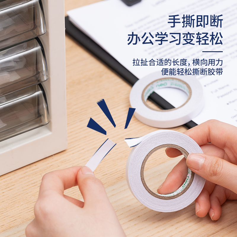 得力强力双面胶学生用高粘度手工儿童幼儿园双面胶带超薄加厚透明两面胶家用超粘固定墙面不留痕文具办公用品