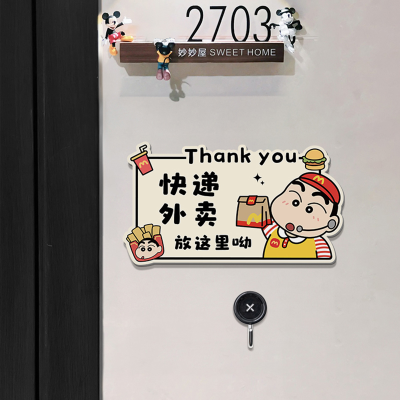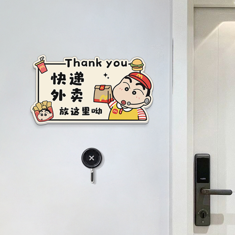 蜡笔小新创意亚克力快递外卖放门口提示牌指示牌入户门装饰门牌免打扰大门口标识牌宅星人社恐神器免打孔挂牌