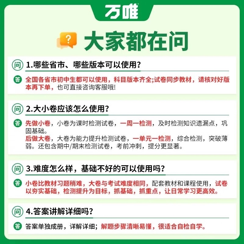 2026版万唯大小卷七年级上册八年级九语文数学英语物理化学政治生物地理试卷测试卷初中四门练习万维同步沪科版情境历史人教基础