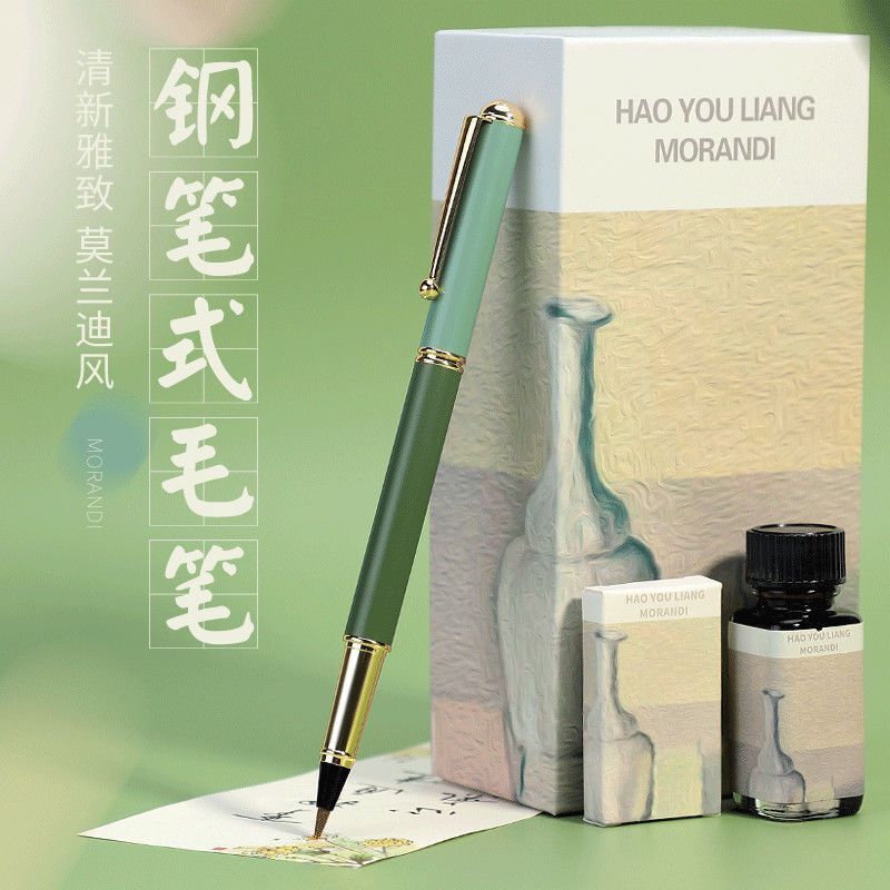 莫兰迪新款钢笔式毛笔小楷抄经书法笔便携式可加墨毛笔软笔秀丽笔钢笔式毛笔可换墨囊软笔勾线