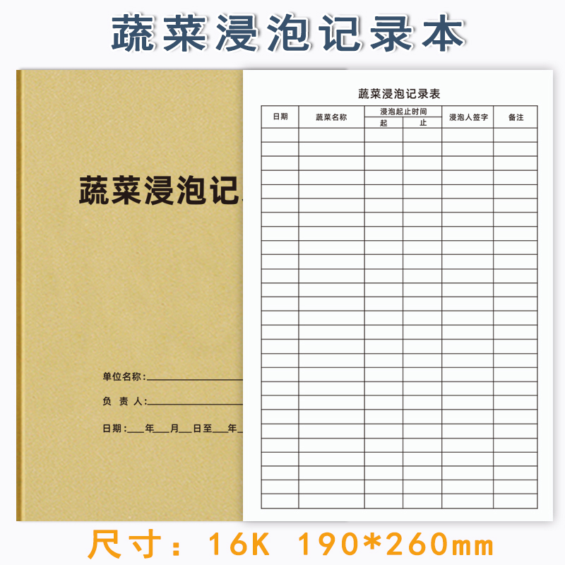 蔬菜浸泡记录本厨房消毒登记本餐具后厨设施设备工具消毒记录本油烟净化器清洗记录簿厨房安全检查登记表定制