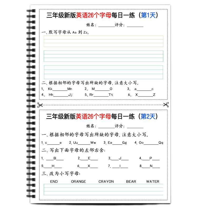 英语三年级上册26个字母每日一练22天字母书写规范练习12页小学英语字母练习册字母ABC大小写