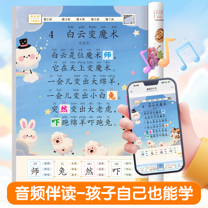 幼小衔接趣味诵读识千字幼儿园每日晨读阅读识字绘本儿童早教启蒙大字彩图注音版大班学前班儿童儿歌读唐诗古诗词朗诵学汉字认字书