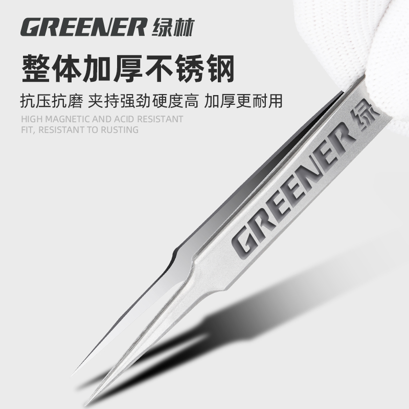 绿林高精密不锈钢镊子手机维修细尖头弯头睫毛夹子燕窝挑毛工具