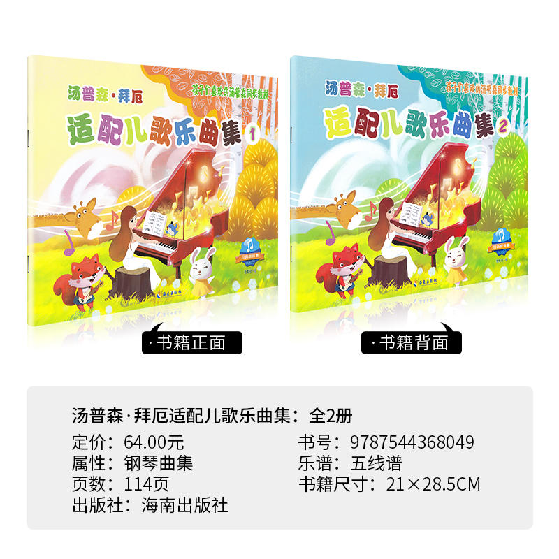 汤普森拜厄适配儿歌乐曲集1+2册 孩子们喜欢的汤普森同步教材 儿童钢琴初步教程儿歌钢琴曲谱书小汤配套书儿童钢琴入门教材正版