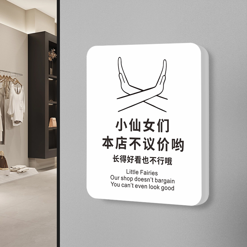 谢绝还价提示牌本店商品出售概不赊账换标识牌不议价讲价告示墙贴服装店非质量问题一经售出离柜创意