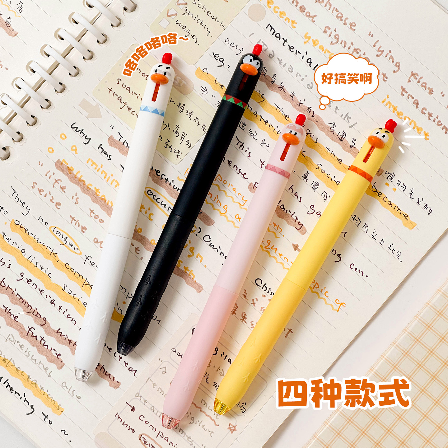搞怪小鸡按动笔高颜值趣味造型可爱学生黑色中性笔速干刷题笔东米
