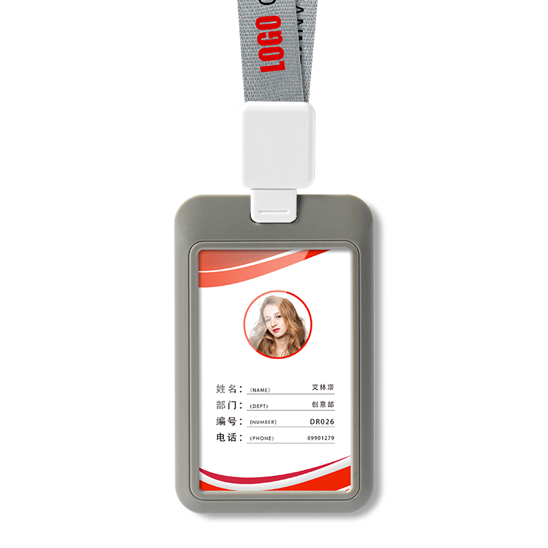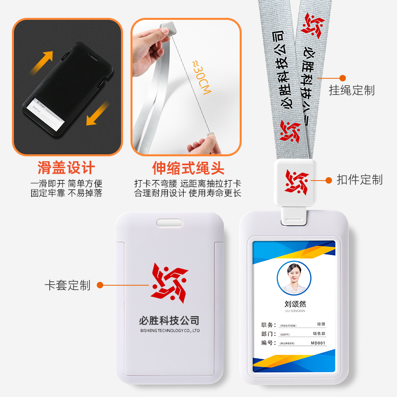 滑盖式胸牌工作证件学生校卡保护套纯色推合卡套员工证件号牌带可伸缩扣绳定制logo定做工牌人像卡易拉扣挂绳