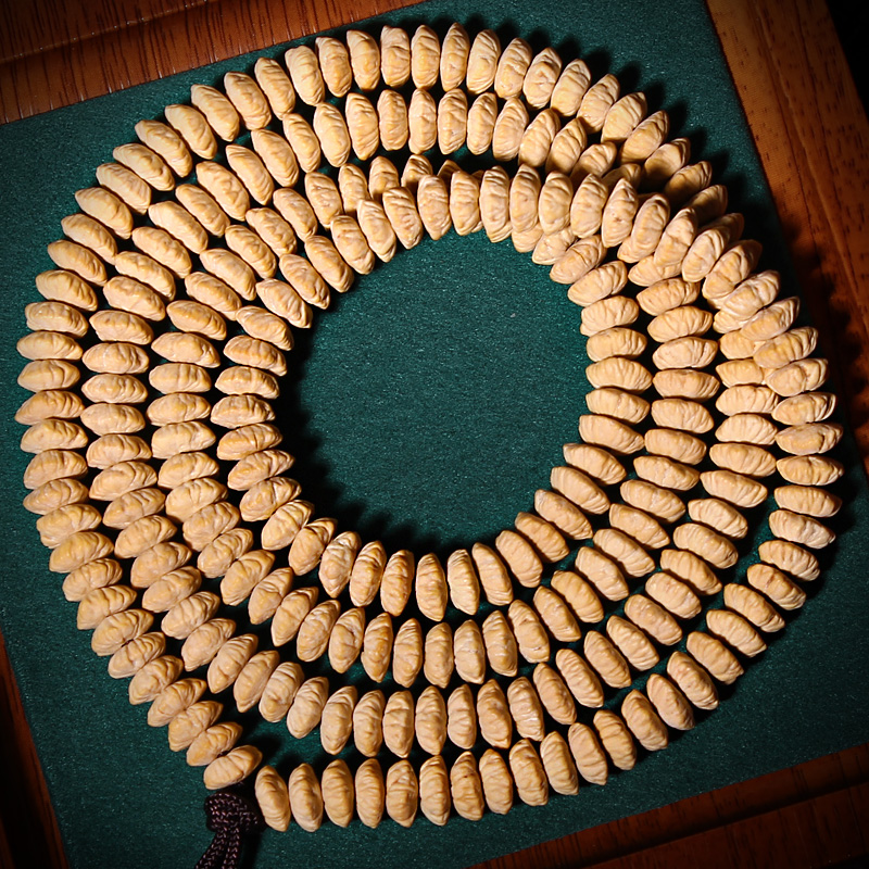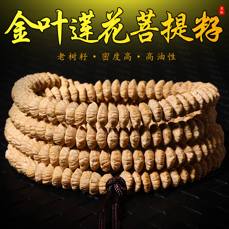 天然金叶莲花菩提籽佛珠项链配饰男女款文玩念珠手串九华山金钱子