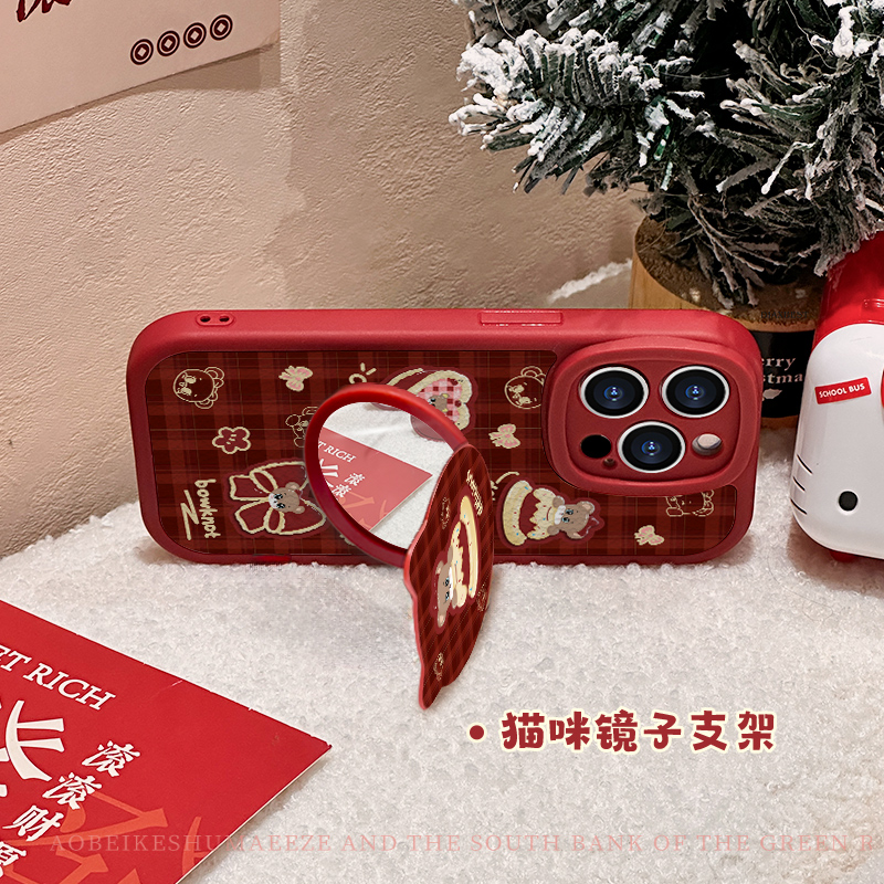 适用于华为Mate70手机壳新年款50Pro立体手贴mate60可爱小熊40/30镜子支架20Pro创意发复古50E日韩格纹小羊皮