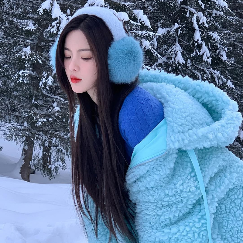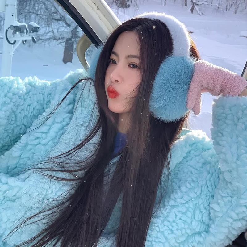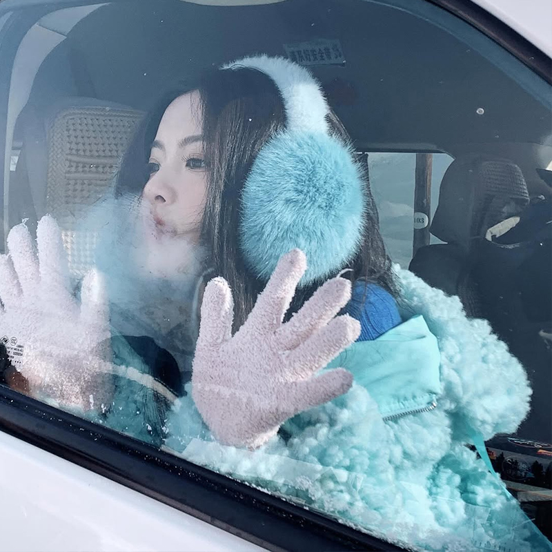 2025新款杨超越同款蓝色毛绒耳罩冬季氛围感保暖防寒护耳耳包耳套