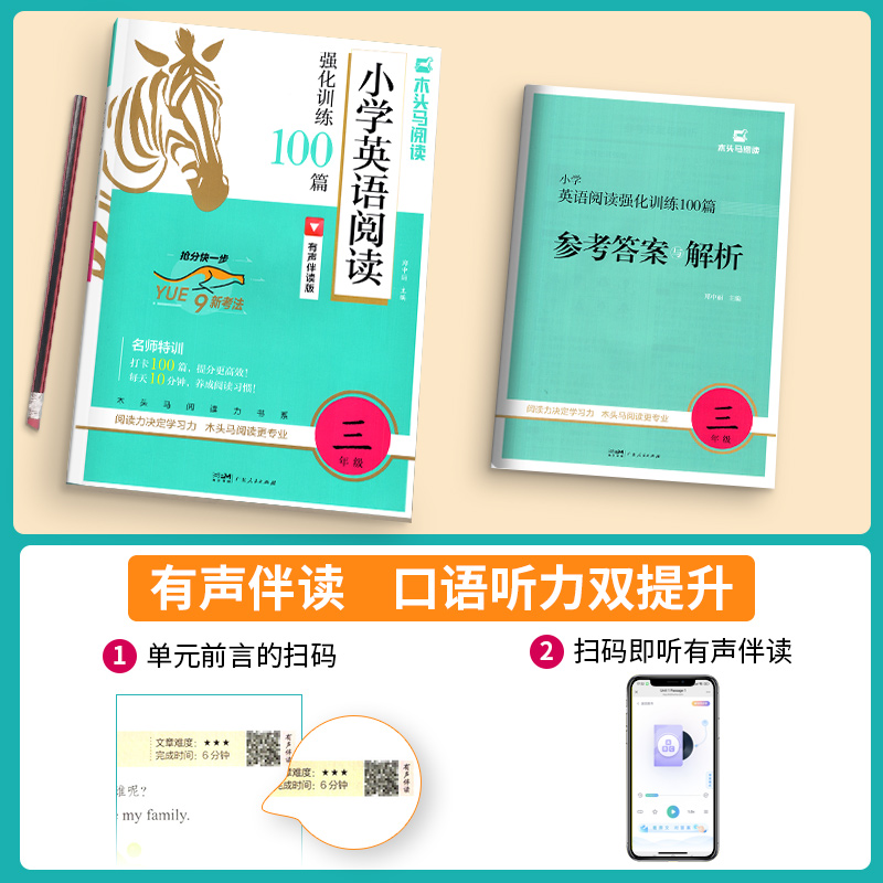 2025新版木头马英语阅读强化训练100篇三四五六年级小学英语阅读理解专项训练题课外阅读100篇阅读力测评高效训练名师特训视频讲解