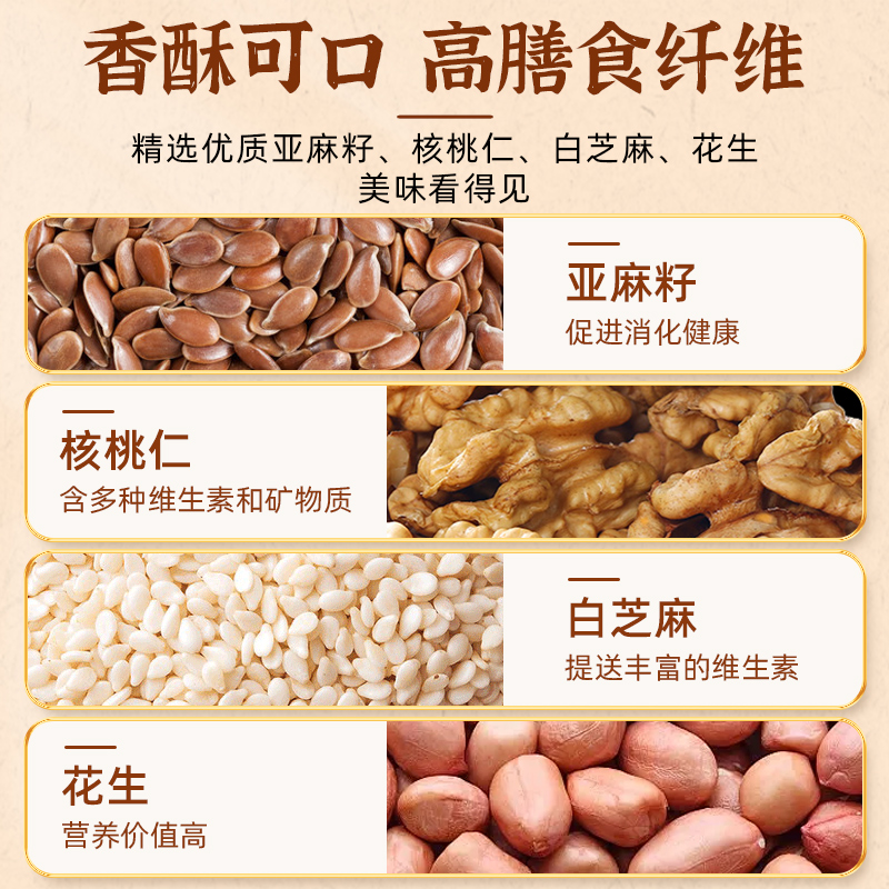 亚麻籽核桃酥正宗无加蔗糖糕点坚果花生老人控饱腹糖抗饿专用零食