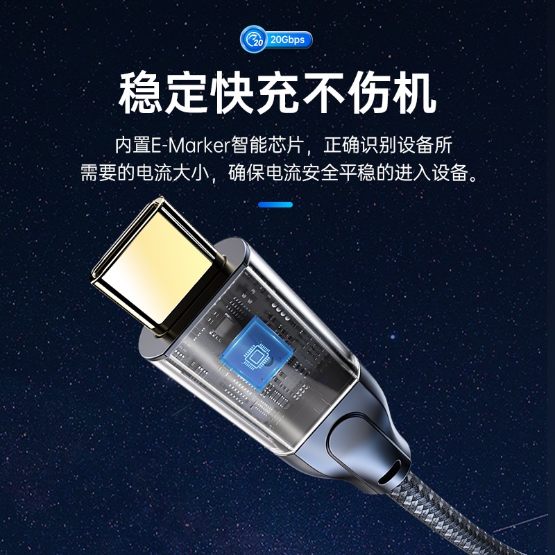 ORICO/奥睿科全功能typec数据线雷电34双头usb3.2gen2公对公母pd100w快充延长线4k显示器视频笔记本手机连接