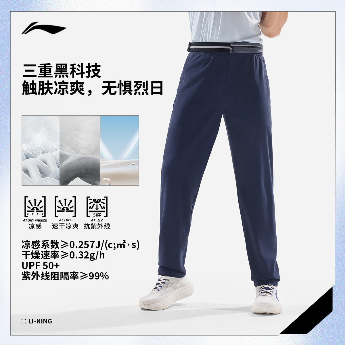 维动更迭速干运动长裤男夏季冰丝梭织薄款篮球跑步训练直筒九分裤