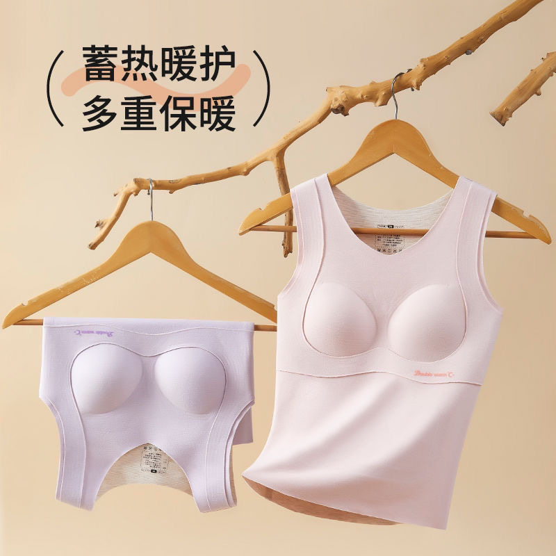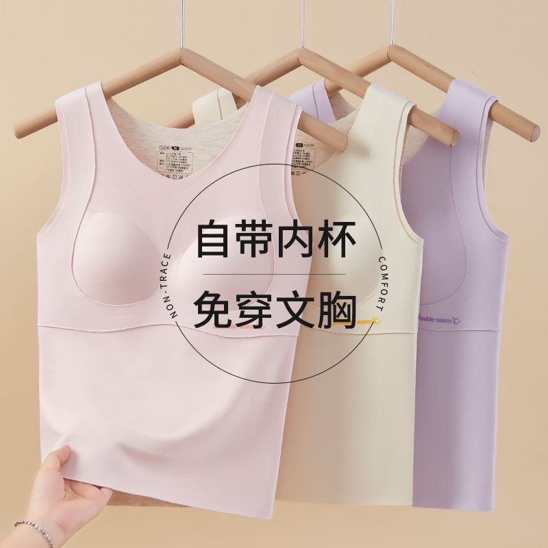 蕉轩德绒无痕保暖背心女款带胸垫免穿文胸加绒加厚打底上衣秋冬季