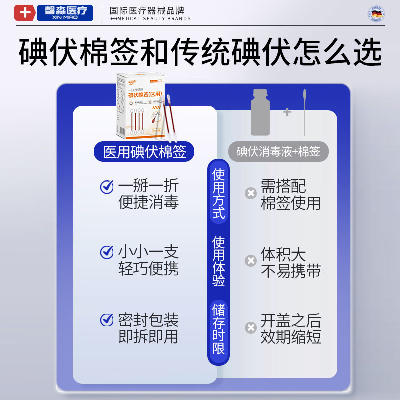 馨淼医疗医用碘伏棉签消毒液无菌便携独立包装一次性伤口酒精棉签