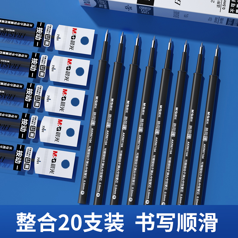 晨光文具 热可擦笔芯 可擦笔小学生专用三年级热可擦中性笔替芯0.5黑色晶蓝色替芯学生专用墨蓝办公走珠笔芯