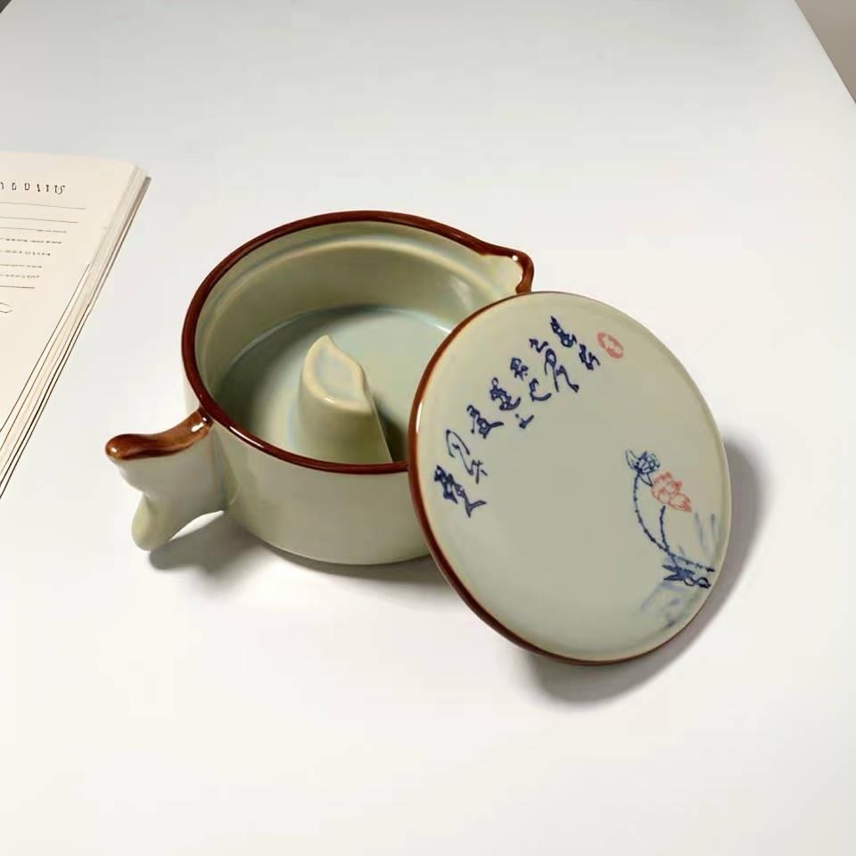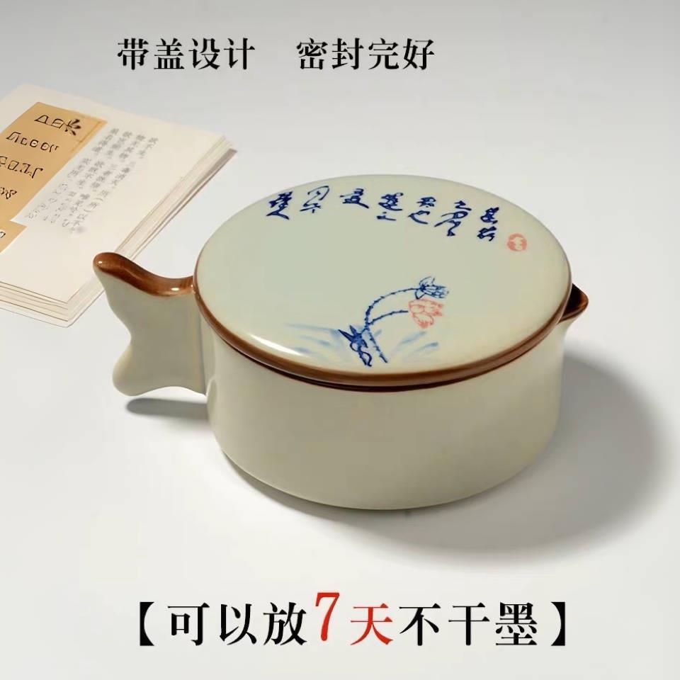 多功能墨池墨盘砚台带盖子墨条毛笔架墨海陶瓷墨汁墨盒墨碟墨砚台