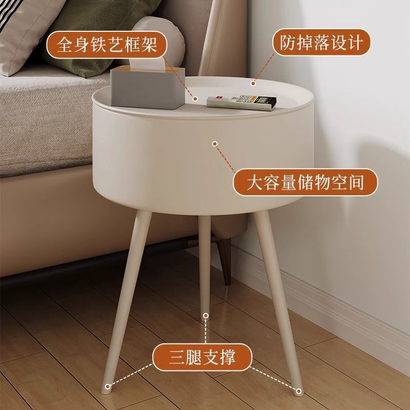 奶油风床头柜现代简约边几小茶几卧室圆形迷你角几新款创意收纳柜